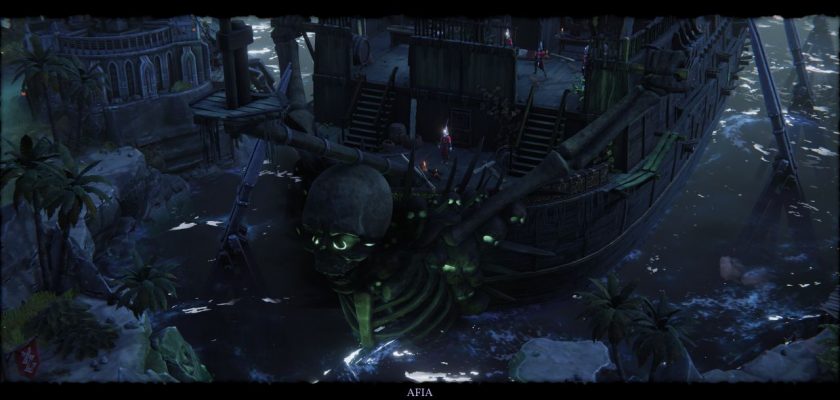 Shadow Gambit: The Cursed Crew führt direkt in die Geschichte ein, indem wir die Piratin Afia auf der Suche nach dem Geisterschiff „Red Marley“ begleiten. Die Suche nach dem Geisterschiff gestaltet sich als einfach, jedoch wartet auf dem Weg die Inquisition, die ebenfalls auf der Suche nach dem Schatz ist.